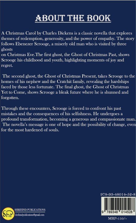 A Christmas Carol by Charles Dickens is a classic novella that explores themes of redemption, generosity, and the power of empathy. The story follows Ebenezer Scrooge, a miserly old man who is visited by three ghosts on Christmas Eve. The first ghost, the Ghost of Christmas Past, shows Scrooge his childhood and youth, highlighting moments of joy and regret. The second ghost, the Ghost of Christmas Present, takes Scrooge to the homes of his nephew and the Cratchit family, revealing the hardships faced by those less fortunate. The final ghost, the Ghost of Christmas Yet to Come, shows Scrooge a bleak future where he is shunned and forgotten. Through these encounters, Scrooge is forced to confront his past mistakes and the consequences of his selfishness. He undergoes a profound transformation, becoming a generous and compassionate man. The novella’s message is one of hope and the possibility of change, even for the most hardened of souls.